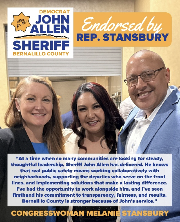 Rep. Melanie Stansbury endorses Bernalillo County Sheriff John Allen on his re-election bid.