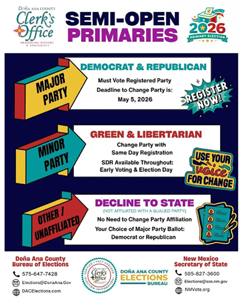 This will be the first time NM voters will be voting in a semi-open primary. Here’s a short description of what this means. Educate yourself and others.